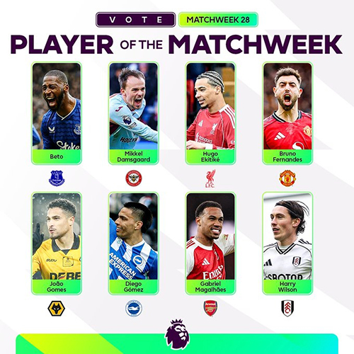 Бруну Фернандеш попал в число номинантов на звание лучшего игрока 28 тура Премьер-лиги.