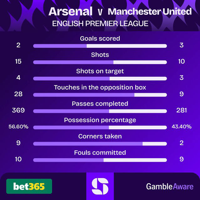 Некоторые факты от статистиков после завершения матча между “Арсеналом” и “Манчестер Юнайтед”:
