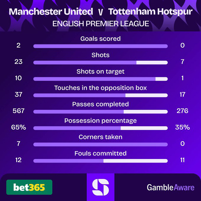 • "Манчестер Юнайтед" одержал четвертую победу подряд впервые с февраля 2024 года. Это их первая победа над "Тоттенхэмом" с октября 2022 года.